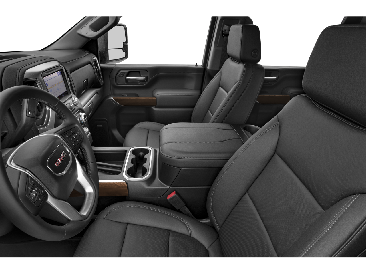 The interior of the Sierra 2500HD SLT is equally impressive, with plush leather-appointed seats, dual-zone automatic climate control, and a host of convenience features that elevate the driving experience. The power-adjustable driver's seat with memory settings and the heated and ventilated front seats ensure maximum comfort, while the wireless charging pad and 120-volt power outlets keep your devices powered up and ready to go.