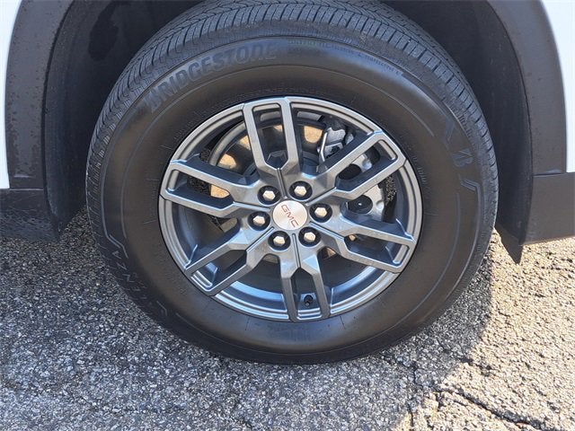 FWD, After Dark Cloth, 12 Speakers, 18 x 7.5 Aluminum Wheels, 2-Way Driver Power Lumbar Seat Adjuster, 3.49 Final Drive Axle Ratio, 3rd row seats: split-bench, 4-Way Manual Front Passenger Seat Adjuster, 4-Wheel Disc Brakes, 8-Passenger Seating (2-3-3 Seating Configuration), 8-Way Power Driver Seat Adjuster, ABS brakes, Air Conditioning, Alloy wheels, AM/FM radio: SiriusXM with 360L, Apple CarPlay/Android Auto, Auto High-beam Headlights, Auto-dimming Rear-View mirror, Automatic temperature control, Bodyside moldings, Bose Premium 12-Speaker System with Sub-Woofer, Brake assist, Bumpers: body-color, Cloth Seat Trim, Compass, Delay-off headlights, Driver door bin, Driver vanity mirror, Dual front impact airbags, Dual front side impact airbags, Electronic Stability Control, Emergency communication system: OnStar Services capable, Exterior Parking Camera Rear, Four wheel independent suspension, Front anti-roll bar, Front Bucket Seats, Front Center Armrest, Front dual zone A/C, Front fog lights, Front License Plate Bracket, Front reading lights, Fully automatic headlights, Heated door mirrors, Heated Driver and Front Passenger Seats, Heated front seats, Heated steering wheel, Illuminated entry, Leather steering wheel, Low tire pressure warning, Navigation System, Occupant sensing airbag, Outside temperature display, Overhead airbag, Overhead console, Panic alarm, Passenger door bin, Passenger vanity mirror, Power door mirrors, Power driver seat, Power Liftgate, Power steering, Power windows, Preferred Equipment Group 4SC, Radio data system, Radio: 15 Diagonal Premium GMC Infotainment System, Rear air conditioning, Rear anti-roll bar, Rear reading lights, Rear seat center armrest, Rear side impact airbag, Rear window defroster, Rear window wiper, Remote keyless entry, Security system, SiriusXM with 360L, Speed control, Speed-sensing steering, Split folding rear seat, Spoiler, Sport steering wheel, Steering wheel mounted audio controls, Tachometer, Telescoping steering wheel, Tilt steering wheel, Traction control, Trip computer, Turn signal indicator mirrors, Variably intermittent wipers, Voltmeter, FWD, After Dark Cloth.